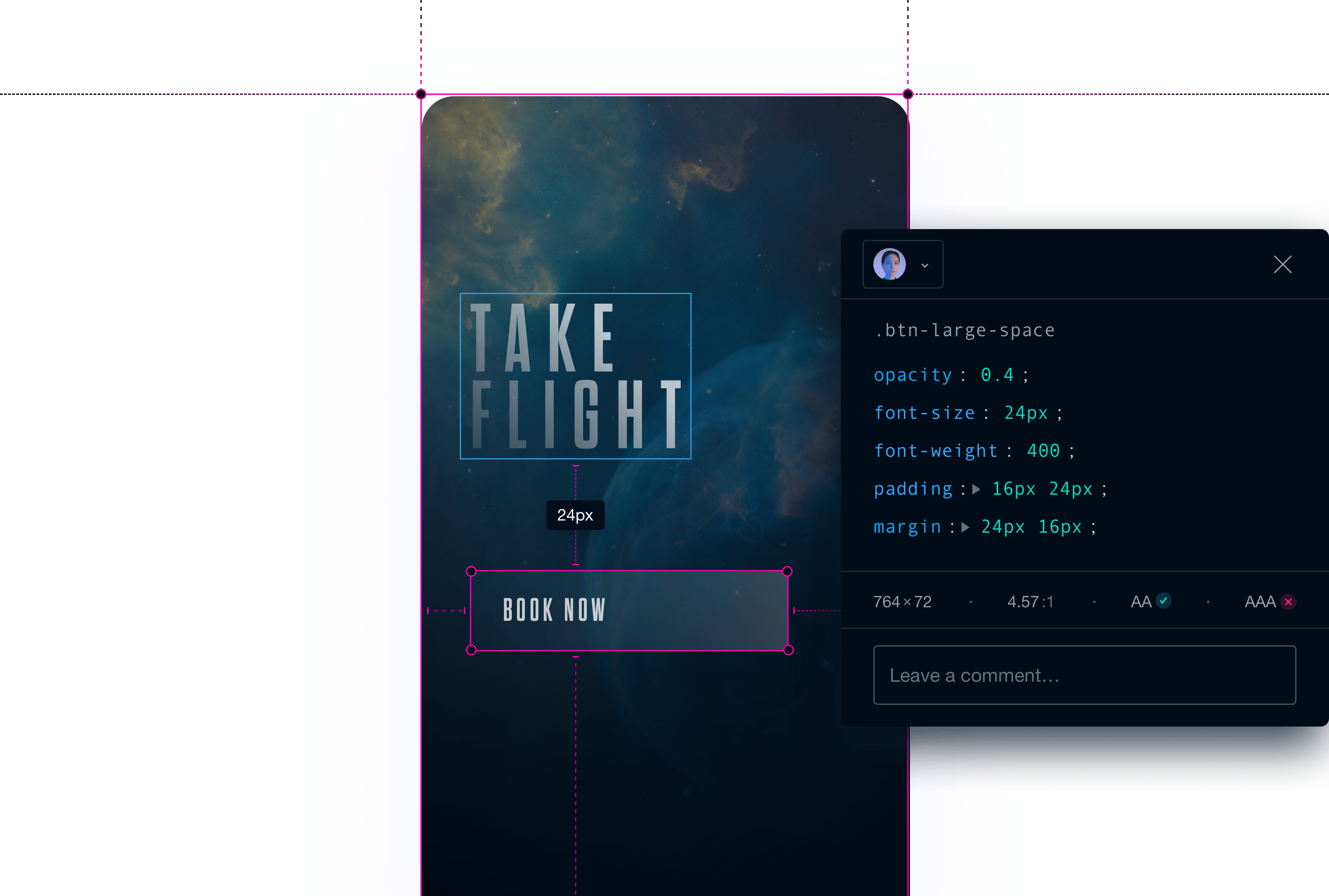 Understanding styles has never been faster. Get complete visibility of your UI just by hovering over elements.