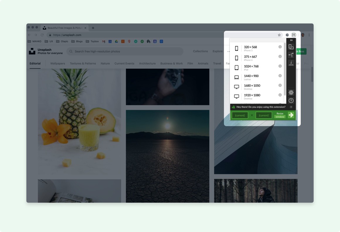 Thus meet Window Resizer. This is a real life-saver when it comes to seeing how your site looks on different viewports. Simply open the extension and either click the preset viewports or enter in something custom.