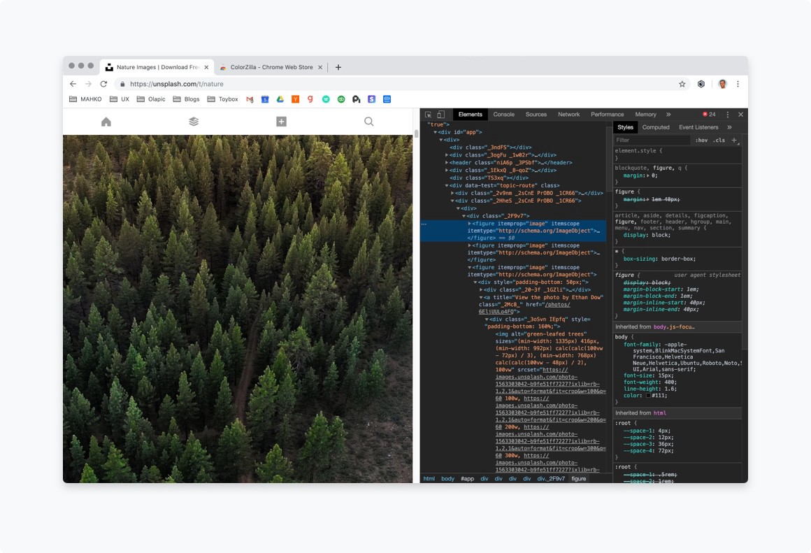 Sometimes you just need a quick way to see what color is being used — and ColorZilla is a great solution for just that. Simply hover over elements on your page to see the hex and rgb color values being used. Click to quickly copy it to your clipboard. It’s fast, simple, and efficient.