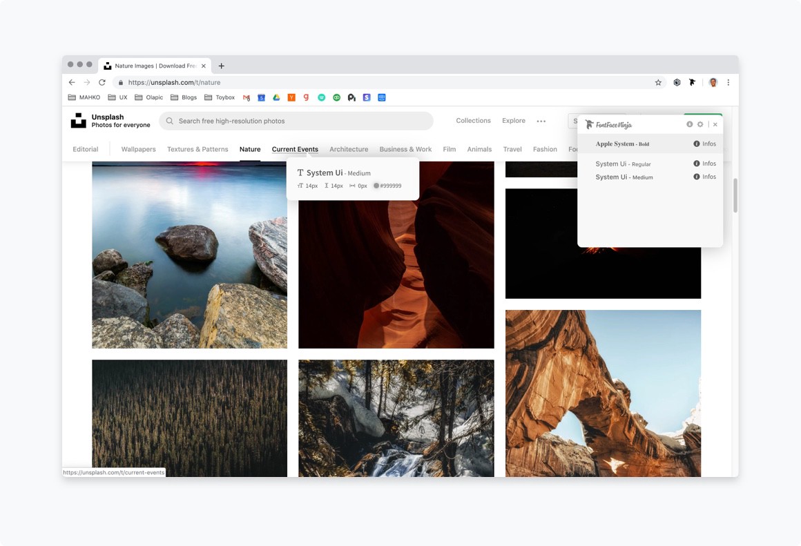 Another easy, breezy, beautiful extension for your downloads is Fontface Ninja. This lets you hover over elements to see what fonts they’re using. You can also go straight from the fonts on the page to purchase using their extension toolbar.